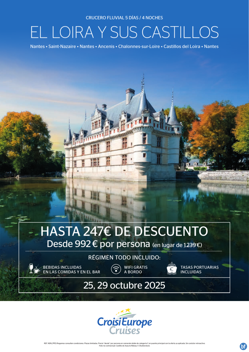 Hasta 247€ DESCUENTO - crucero fluvial por el Loira y sus castillos - 5 días - Todo Incluido - 25/10 + 29/10